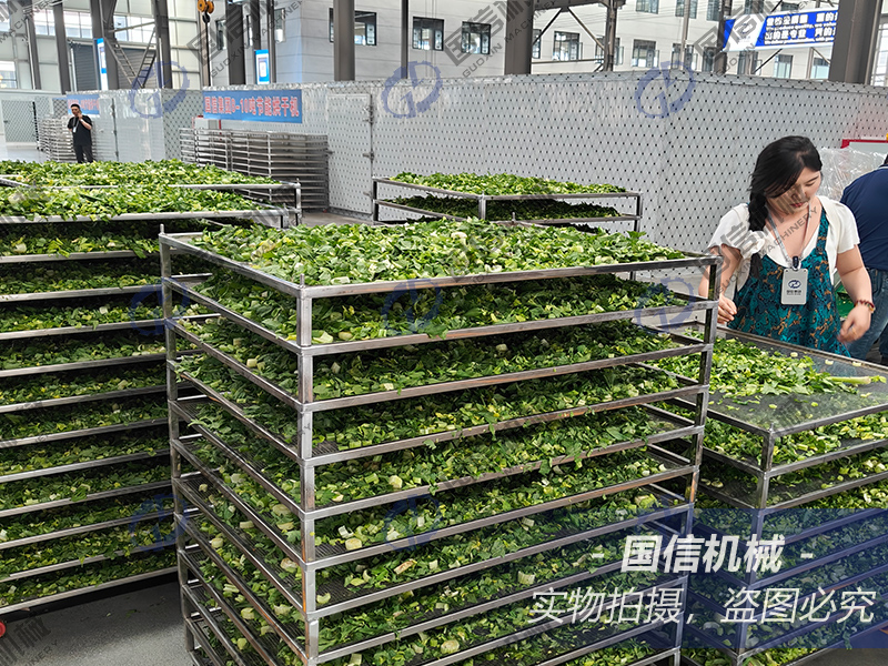 2025年5月16日,客戶帶幾百斤芹菜來廠試機(jī)烘干,不僅要烘干后的芹菜干,烘干中產(chǎn)生的冷凝水也要打包二次加工再出售,芹菜烘干全程用了十個小時(shí)左右,成品