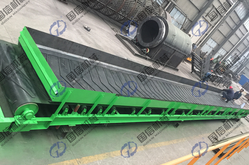 3、破袋之后的垃圾由皮帶輸送機送進滾筒篩分機中進行處理,篩選出有機物質(zhì),有機物經(jīng)過懸掛式的磁選機設備篩選出鐵制物。