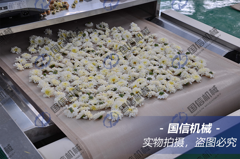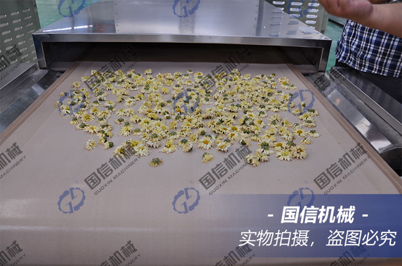 顧名思義,這款設(shè)備采用的就是微波來進行烘干和殺青,設(shè)備集殺青、殺菌、烘干于一體,一機多用,工作原理是以微波的高頻震蕩作用,使菊花從內(nèi)而外的干燥,殺青效果好,營養(yǎng)物質(zhì)保留完整,烘干后的菊花色澤鮮艷,不變色,賣相好。