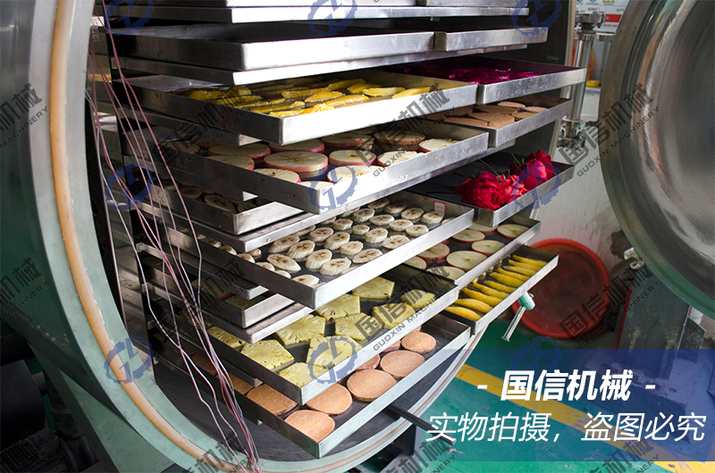 導(dǎo)讀:國信機械生產(chǎn)的果蔬真空冷凍干燥機,是在真空狀態(tài)下,利用升華原理,使預(yù)先凍結(jié)的果蔬中的水分不經(jīng)過冰的融化直接以冰態(tài)升華為水蒸汽被除去,從而使果蔬干燥,避免了傳統(tǒng)脫水技術(shù)方法帶來的變色、變味、營養(yǎng)成分損失大、復(fù)水性差等缺陷,大限度的保持原料果蔬的外觀品質(zhì)和營養(yǎng)價值;并具有保持原食品的色、香、 味、營養(yǎng)不變、復(fù)水性好、重量輕、可常溫貯藏等優(yōu)點。