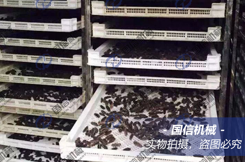 3、干燥:通過(guò)海參烘干機(jī)將海參烘干。傳統(tǒng)的做法是通過(guò)日曬等方法干燥,原始又不潔凈,通過(guò)先進(jìn)技術(shù)的引進(jìn),使得淡干海參含雜質(zhì)更少,烘干效果更明顯,更易儲(chǔ)藏,且衛(wèi)生健康。