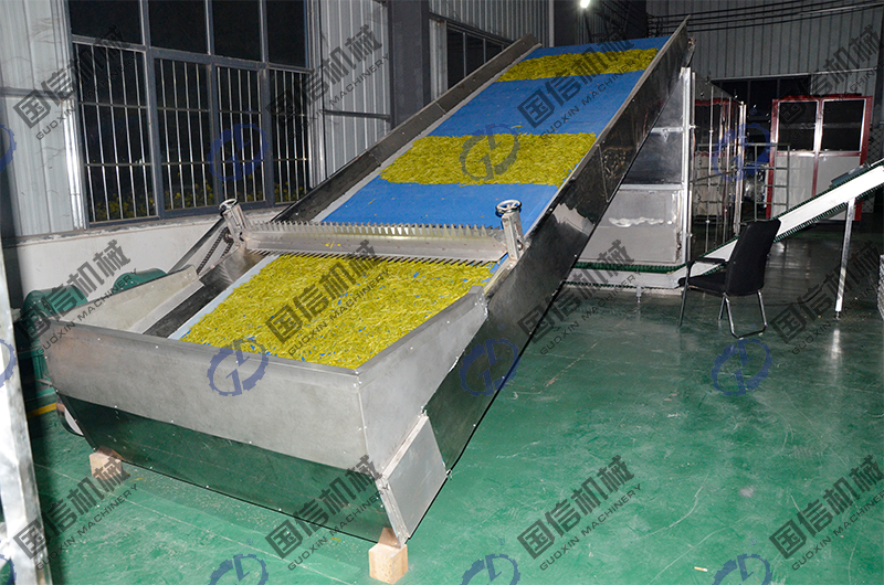 黃花菜全自動殺青烘干流水線設備具有規(guī)模化、大批量、連續(xù)式加工生產的效果,一次開機就能夠對采摘后的所有黃花菜實現(xiàn)干制加工,產量非常大時,還能夠24小時連續(xù)生產,具有閃蒸、殺青、烘干的一體化功能,日處理可達萬斤至十幾萬斤。使用這種新型黃花菜殺青烘干一體機整個加工過程,只需1~2人即可完成,改變了傳統(tǒng)烘干勞動力強度大的缺點,干燥時間也縮短了3分之二以上,也大大的節(jié)約了成本,熱源方面可以選擇燃煤、燃生物質顆粒、天然氣、蒸汽、電(空氣能熱泵)等類型,然后搭配國信廠家的換熱系統(tǒng),置換出純凈的熱風對黃花菜干制加工,不會對其品質造成污染,再加上智能化控制系統(tǒng),可以提升烘干品質,是集中產業(yè)化黃花菜烘干的理想設備。