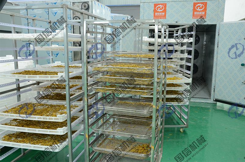 使用我們國信機(jī)械廠家的黃花菜烘干機(jī),只需設(shè)置好烘干工藝曲線即可,整個(gè)過程為自動化運(yùn)行,節(jié)約了人力物力。智能精準(zhǔn)的控制烘箱內(nèi)部的溫濕度,保證了烘干品質(zhì)。
