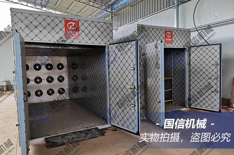 3、烘房循環系統:360°熱風循環系統,將熱量帶到烘干房的每個角落提升烘干房的溫度,并將物料蒸發出來的水分帶走。