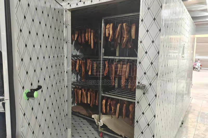 空氣能臘肉烘干機,是目前比較理想的臘味制品干燥方式,接近自然干燥,表面水分的蒸發速度與內部水分向表面遷移速度比較接近,被烘干物品的色澤好、外形好、產品等級高。 空氣能熱泵臘肉烘干機可適用于各類肉制品的烘干:如臘肉、臘腸、臘鴨、臘魚、臘雞、臘兔、臘乳狗、雞肉泥等......