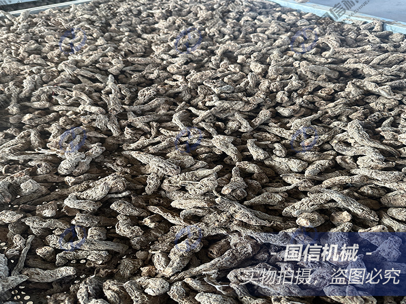 與土灶烘干和日曬干燥相比,采用網(wǎng)帶地黃烘干機(jī)是一種理想的干燥方法。其設(shè)備采用熱風(fēng)為干燥介質(zhì),濕物料之間連續(xù)接觸,使?jié)裎锪现兴乃蛛S熱擴(kuò)散,去除氣化和蒸發(fā),達(dá)到干燥的目的。地黃的烘干過程相對(duì)簡(jiǎn)單,只需要三個(gè)步驟就可以完成:
